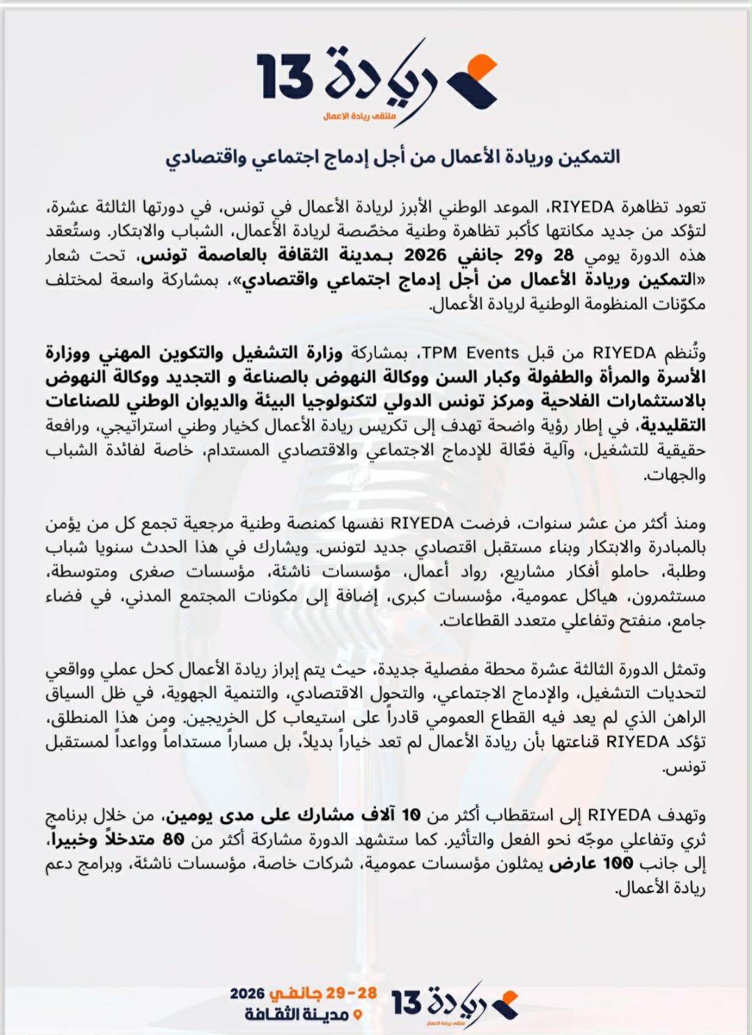 تعلن إدارة مهرجان نيابوليس لمسرح الطفل عن تنظيم الدورة الثامنة والثلاثين من 21 إلى 28 ديسمبر بمدينة نابل، في حدث ثقافي وفنّي يُعتبر من أبرز المواعيد الموجّهة للطفل في تونس والعالم العربي وإفريقيا الشمالية وحوض المتوسط.