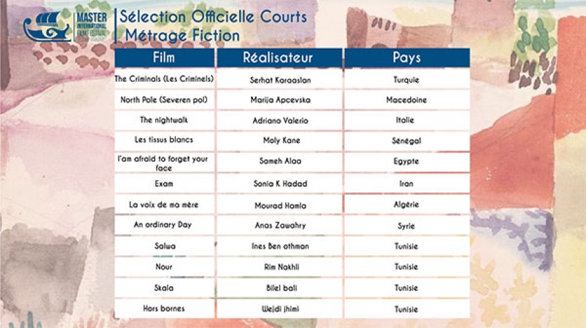 وتسجل تونس حضورها عبر أربعة أفلام من بين 12 عمل، يتنافس على الشراع الذهبي لأفضل فيلم روائي قصير في المهرجان السينمائي الدولي ياسمين الحمامات وهي: