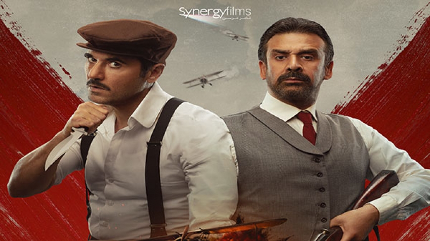 في البوستر يظهر كريم عبد العزيز مرتدياً سترة أنيقة، بينما يحمل في يده بندقية قد تدل على إنه أكثر رزانة ودقة في التصويب، أما أحمد عز فيرتدي قميصاً ومسك في يده سكيناً ويبدو أنه يتوعد أحدهم، وهو ما قد يدل على براعة في الاشتباك بالأيدي، بينما في الخلفية تظهر طائرات حربية ونيران وخطين باللون الأحمر على شكل Vفي إشارة إلى علامة النصر أو سفك الدماء.